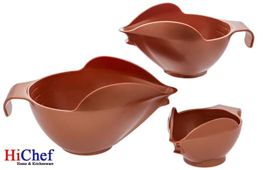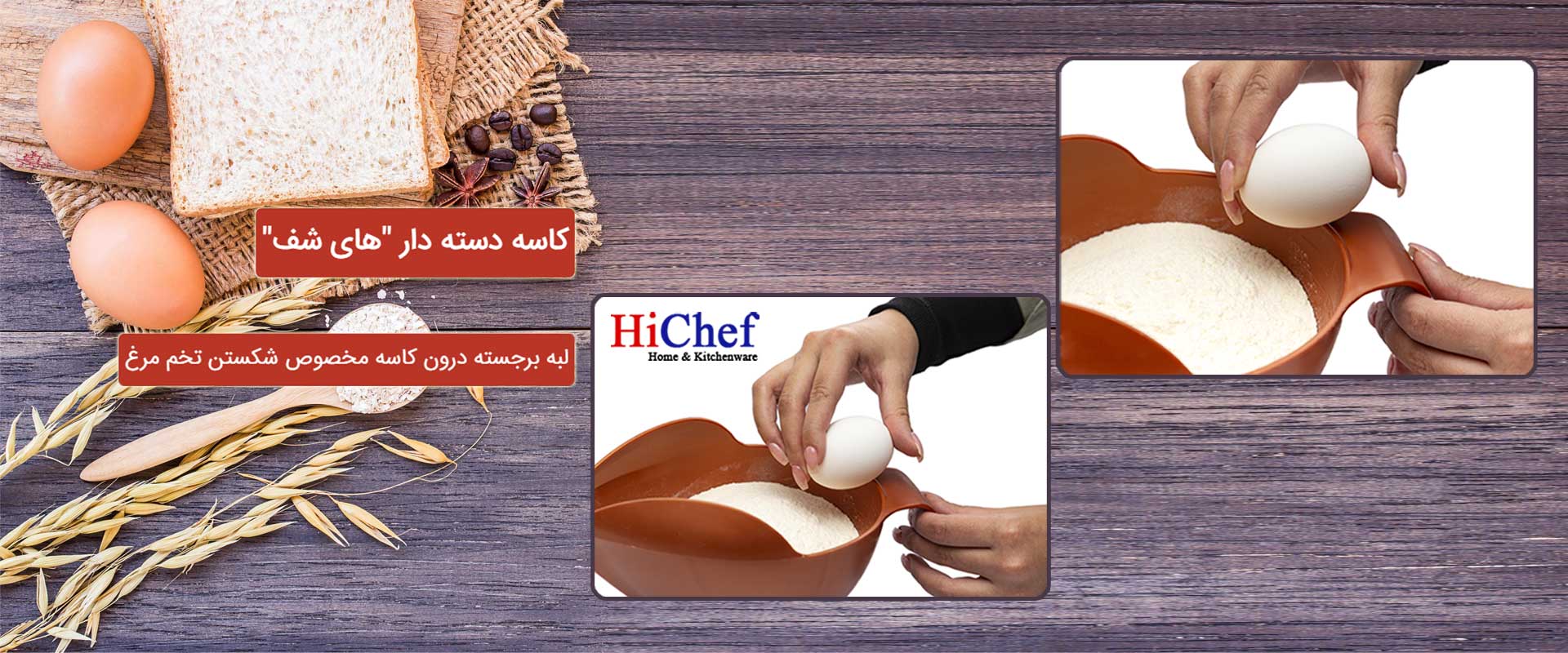 کاسه دسته دار "های شف " کاسه ای است که باعث سهولت در مخلوط کردن ، اندازه گیری دقیق تر مواد غذایی ، جلوگیری از بیرون ریختن مواد از اطراف کاسه هنگام استفاده و تمیزی بیشتر می گردد.