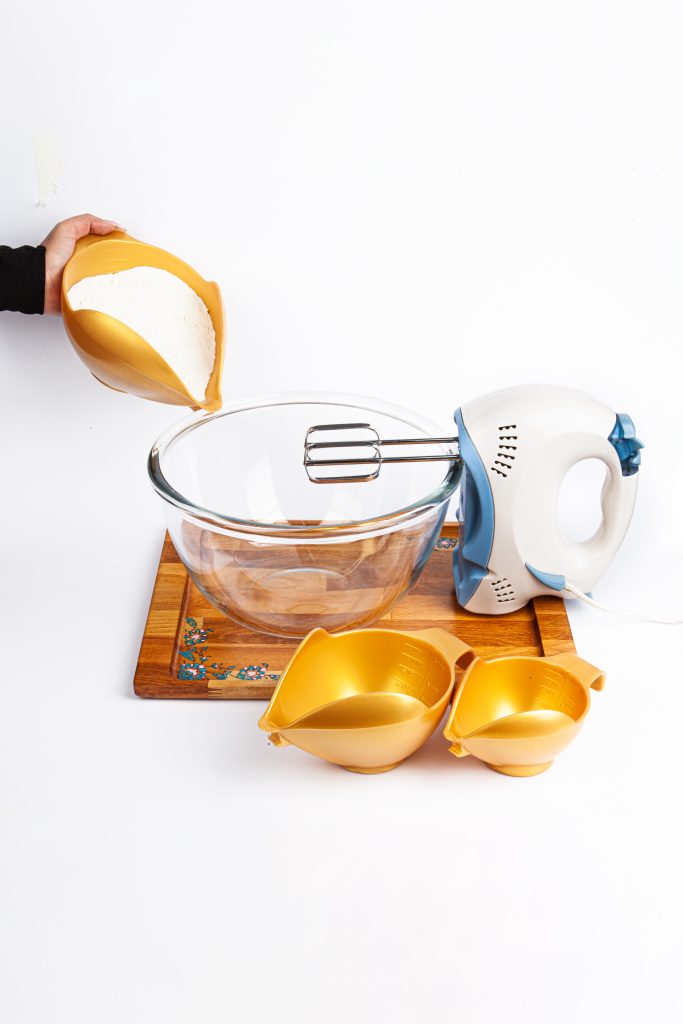 کاسه “های شف” دارای شیار بیرونی زیر دهانه خروجی که تکیه گاهی برای لبه ظرف دیگر است تا نلغزد و مواد بیرون از کاسه نریزد.